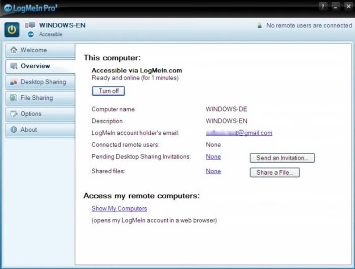 To begin, install LogMeIn on both the host and client devices, create an account, and use the LogMeIn app to access the system remotely.