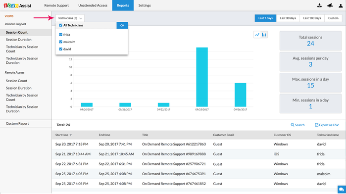 Zoho Assist provides secure remote access solutions for Windows PCs with an emphasis on remote IT troubleshooting.
